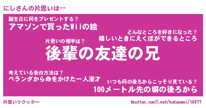 | ポケモン風あだ名 | 『ニシチュウ』『ニシダネ』『ヒニシ』 |