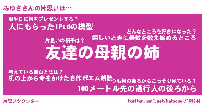 | ファンタジー風あだ名 | 『ミユフェル』『エターナルミユサー』 |
