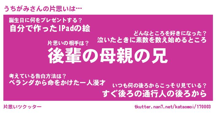 | ピコ太郎風あだ名 | 『ウコ太郎』『ピウ次郎』『ウチ六郎』 |