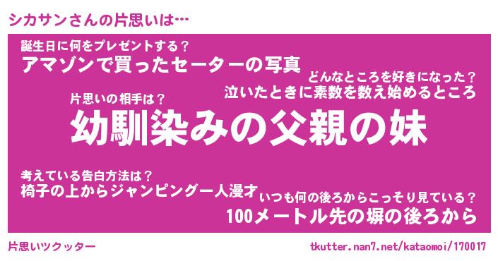| ファンタジー風あだ名 | 『シカフェル』『エターナルシカサンー』 |
