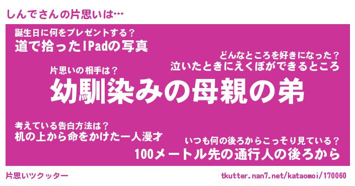 | 男性向けラノベタイトル風あだ名 | 『しんでの憂鬱』 |