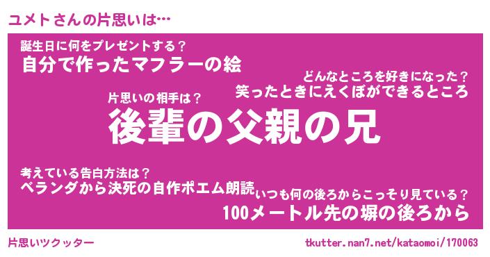 | ヘコむあだ名 | 『ユメふぇ~』『つくし』『ユメ太郎』 |