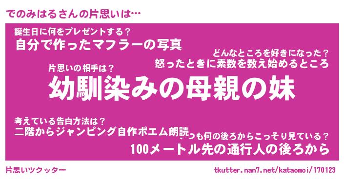 | 男性向けラノベタイトル風あだ名 | 『でのみはるの憂鬱』 |