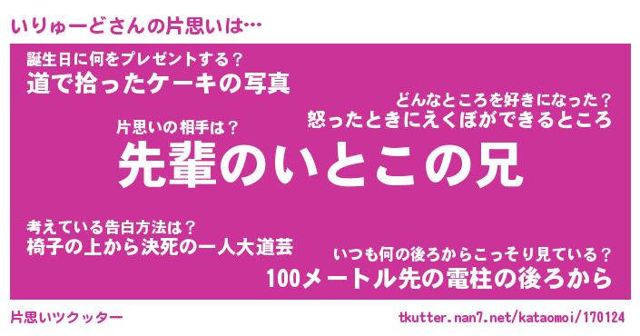 | 男性向けラノベタイトル風あだ名 | 『いりゅーどの憂鬱』 |