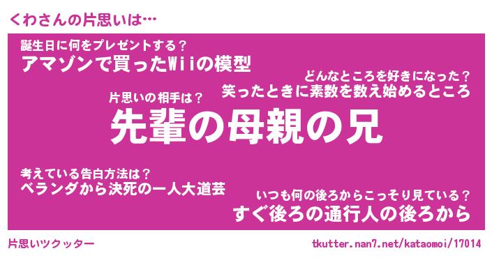 | ヘコむあだ名 | 『くわにー』『なまこ酢』『くわっぺ』 |