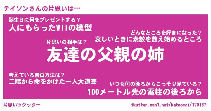 | ヘコむあだ名 | 『テイふぇ~』『豆乳』『テイっ子』 |