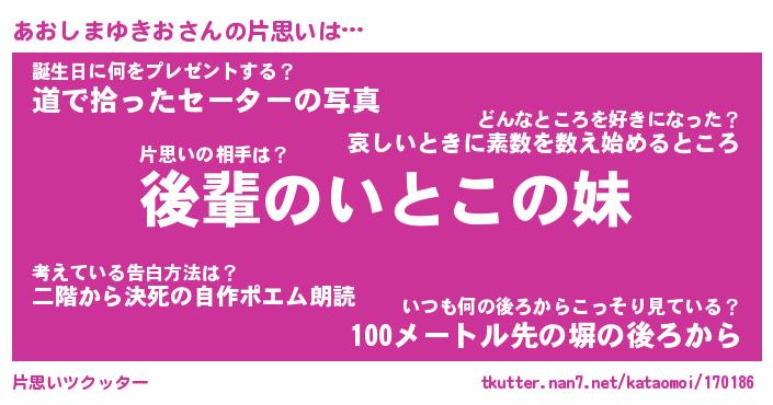| 伝説のあだ名 | 『封印されしスナイパーあおしまゆきお』 |