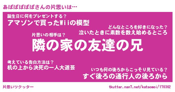 | 胡散臭い通販商品みたいなあだ名 | 『必ず成功する霊験あらたかなお札…その名も「あぱぱぱぱぱ」』 |