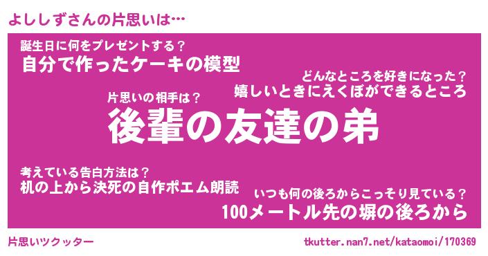 | ヘコむあだ名 | 『よしもー』『つくし』『よし太郎』 |