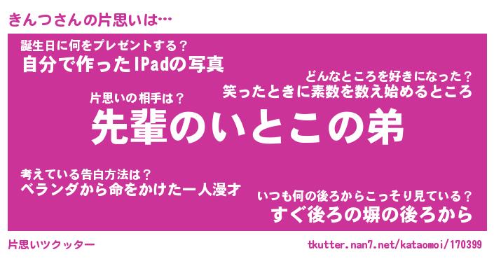 | ヘコむあだ名 | 『きんもー』『つくし』『きんを』 |