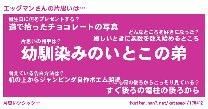 | 男性向けラノベタイトル風あだ名 | 『エッグマンの憂鬱』 |