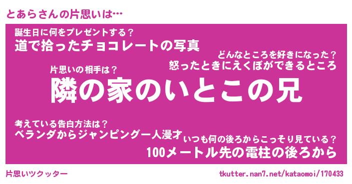 | ポケモン風あだ名 | 『トアチュウ』『トアラダネ』 |
