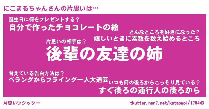 | ヘコむあだ名 | 『にこっふぃ~』『牛乳』『にこお』 |