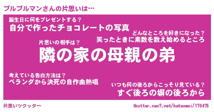 | ヒーロー風カッコイイあだ名 | 『スーパープルプルマン』『黄金騎士プル』 |
