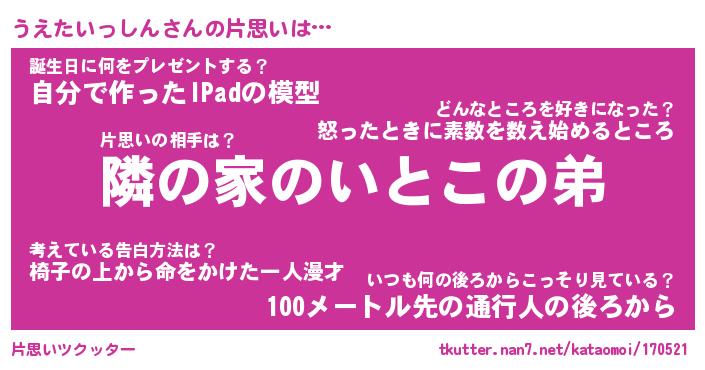 | ヘコむあだ名 | 『うえにゅー』『つくし』『うえを』 |