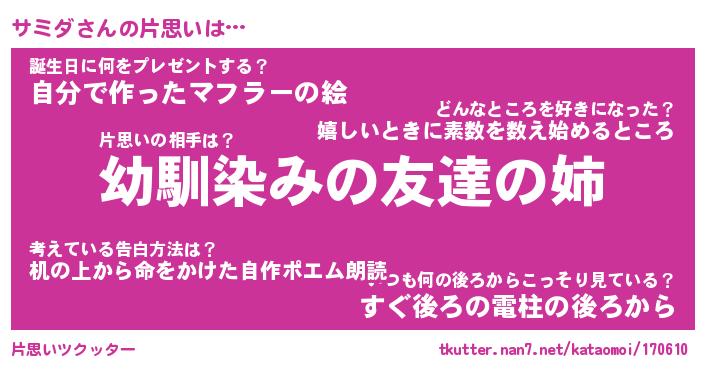 | 2回繰り返すあだ名 | 『サミサミ』『ササミミ』『ぬめぬめ』 |