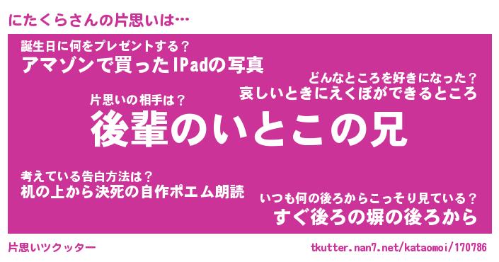 | ヘコむあだ名 | 『にたにゅー』『豆乳』『にたっちょ』 |