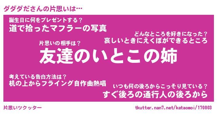| ヘコむあだ名 | 『ダダにゅー』『なまこ酢』『ダダを』 |