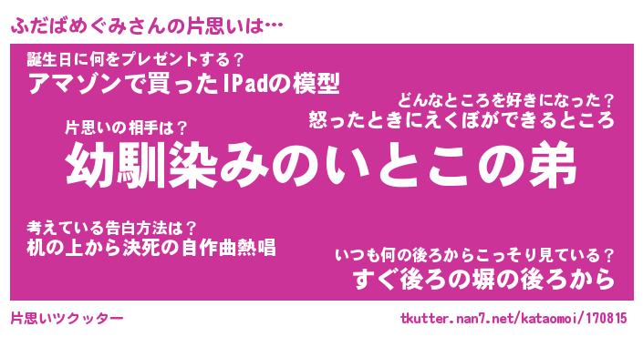 | 男性向けラノベタイトル風あだ名 | 『ふだばめぐみの憂鬱』 |