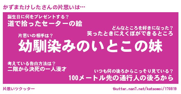 | ポケモン風あだ名 | 『カズチュウ』『カズマダネ』 |