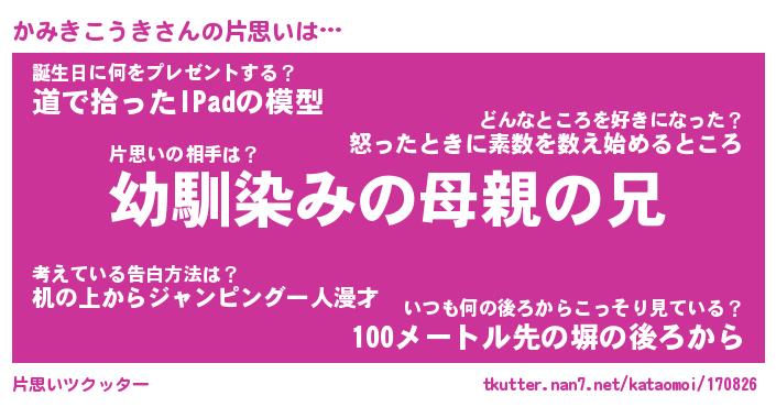 | 胡散臭い通販商品みたいなあだ名 | 『必ず成功するブレスレット…その名も「かみきこうき」』 |