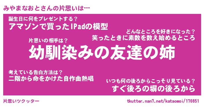 | ピコ太郎風あだ名 | 『ミコ八郎』『ピミ六郎』『ミヤ六郎』 |