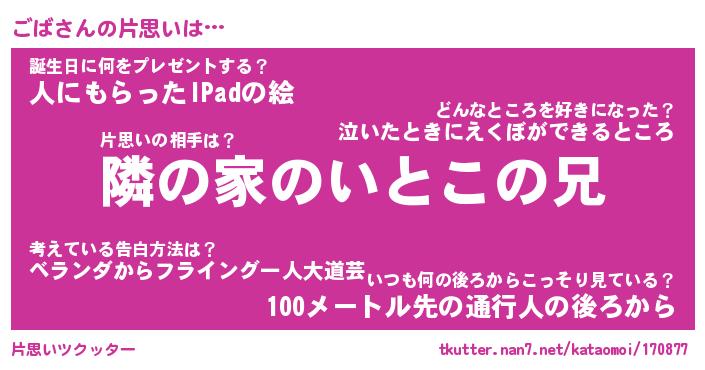 | ピコ太郎風あだ名 | 『ゴコ四郎』『ピゴ史郎』『ゴバ六郎』 |