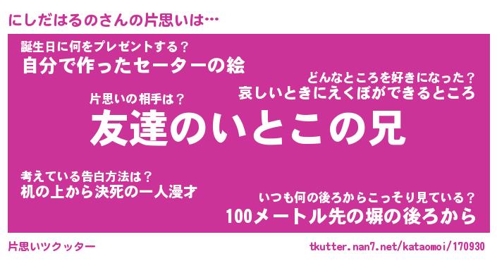 | ヘコむあだ名 | 『にしにゅー』『つくし』 |