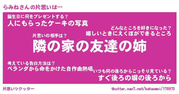 | ヘコむあだ名 | 『らみもー』『つくし』『らみっ子』 |