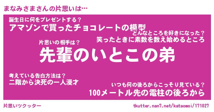 ヘコむあだ名 | 『まなにゅー』『なまこ酢』『まなを』 |