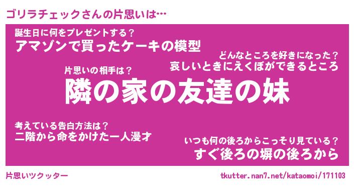 | 意味不明あだ名 | 『ペロリンゴリラチェック』 |