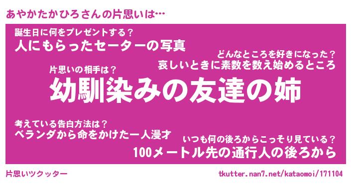 | 男性向けラノベタイトル風あだ名 | 『あやかたかひろの憂鬱』 |