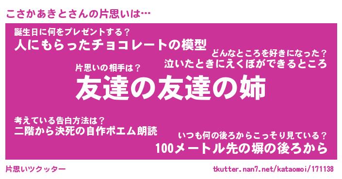 | 伝説のあだ名 | 『封印されしスナイパーこさかあきと』 |