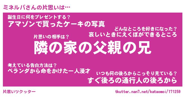 | ファンタジー風あだ名 | 『ミネフェル』『エターナルミネルバー』 |