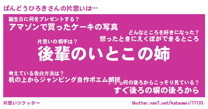 | ヘコむあだ名 | 『ばんもー』『なまこ酢』『ばんを』 |