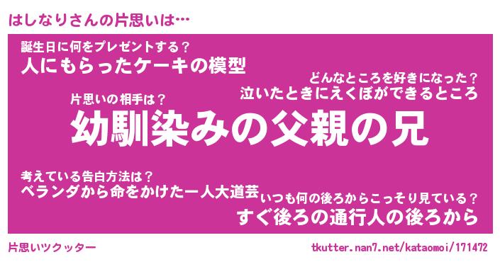 | ヘコむあだ名 | 『はしにゅー』『つくし』 |