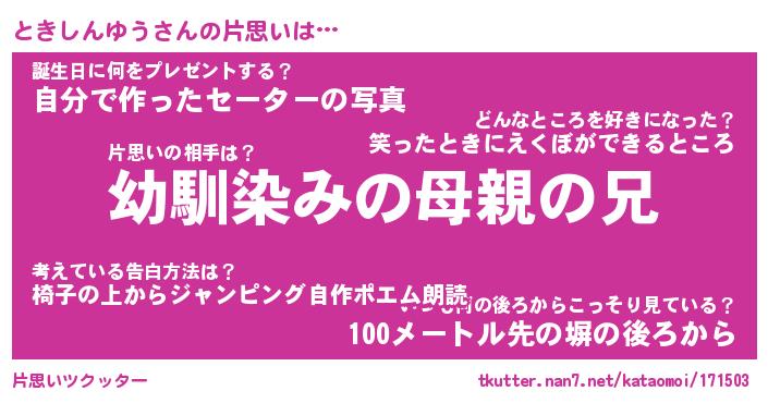 | 胡散臭い通販商品みたいなあだ名 | 『必ず成功するブレスレット…その名も「ときしんゆう」』 |