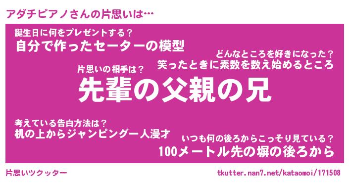 | 男性向けラノベタイトル風あだ名 | 『アダチピアノの憂鬱』 |