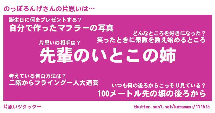 | 男性向けラノベタイトル風あだ名 | 『のっぽろんげの憂鬱』 |