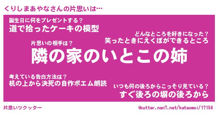 | 伝説のあだ名 | 『不死鳥のスナイパーくりしまあやな』 |