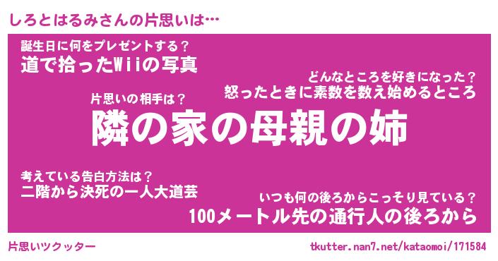 | ヘコむあだ名 | 『しろにー』『酢こんぶ』『しろお』 |