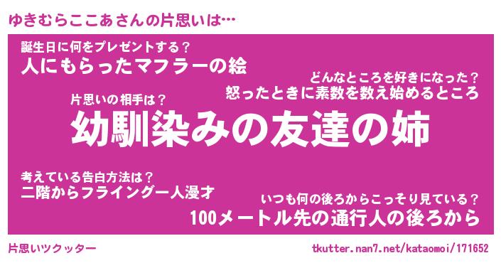 | 女子向けラノベタイトル風あだ名 | 『(仮)ゆきむらここあのやんごとなき事情』 |
