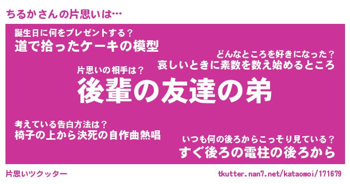 | ヘコむあだ名 | 『ちるっふぃ~』『豆乳』『ちるを』 |