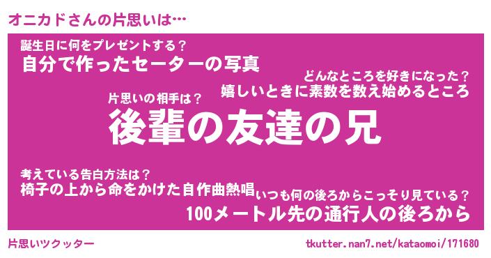 | 胡散臭い通販商品みたいなあだ名 | 『モテモテ間違いなし霊験あらたかなお札…その名も「オニカド」』 |