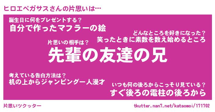 | 男性向けラノベタイトル風あだ名 | 『ヒロエペガサスの憂鬱』 |