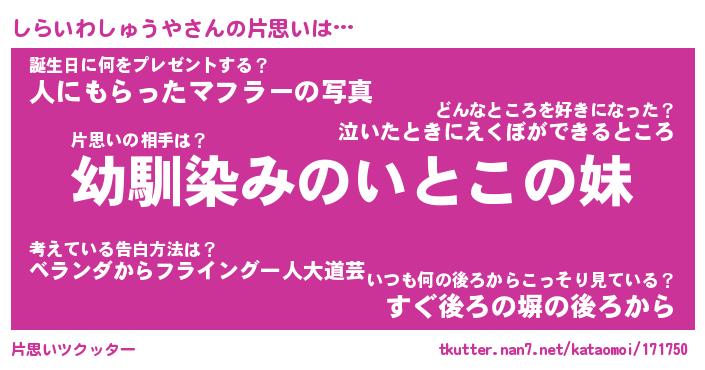 | 胡散臭い通販商品みたいなあだ名 | 『必ず成功する霊験あらたかなお札…その名も「しらいわしゅうや」』 |