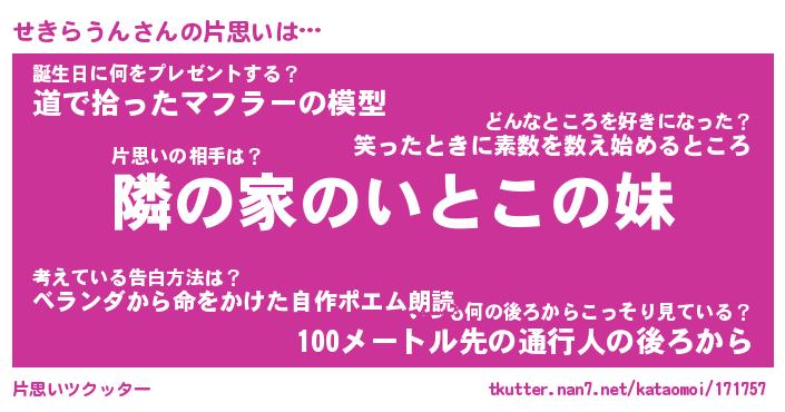 | 胡散臭い通販商品みたいなあだ名 | 『必ず成功する水晶球…その名も「せきらうん」』 |