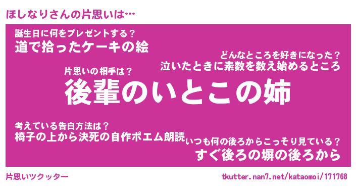 | 胡散臭い通販商品みたいなあだ名 | 『モテモテ間違いなし霊験あらたかなお札…その名も「ほしなり」』 |