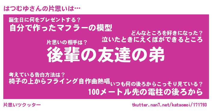 | ヘコむあだ名 | 『はつっふぃ~』『つくし』『はつを』 |