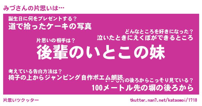 | ポケモン風あだ名 | 『ミヅチュウ』『ミヅダネ』『ヒミヅ』 |